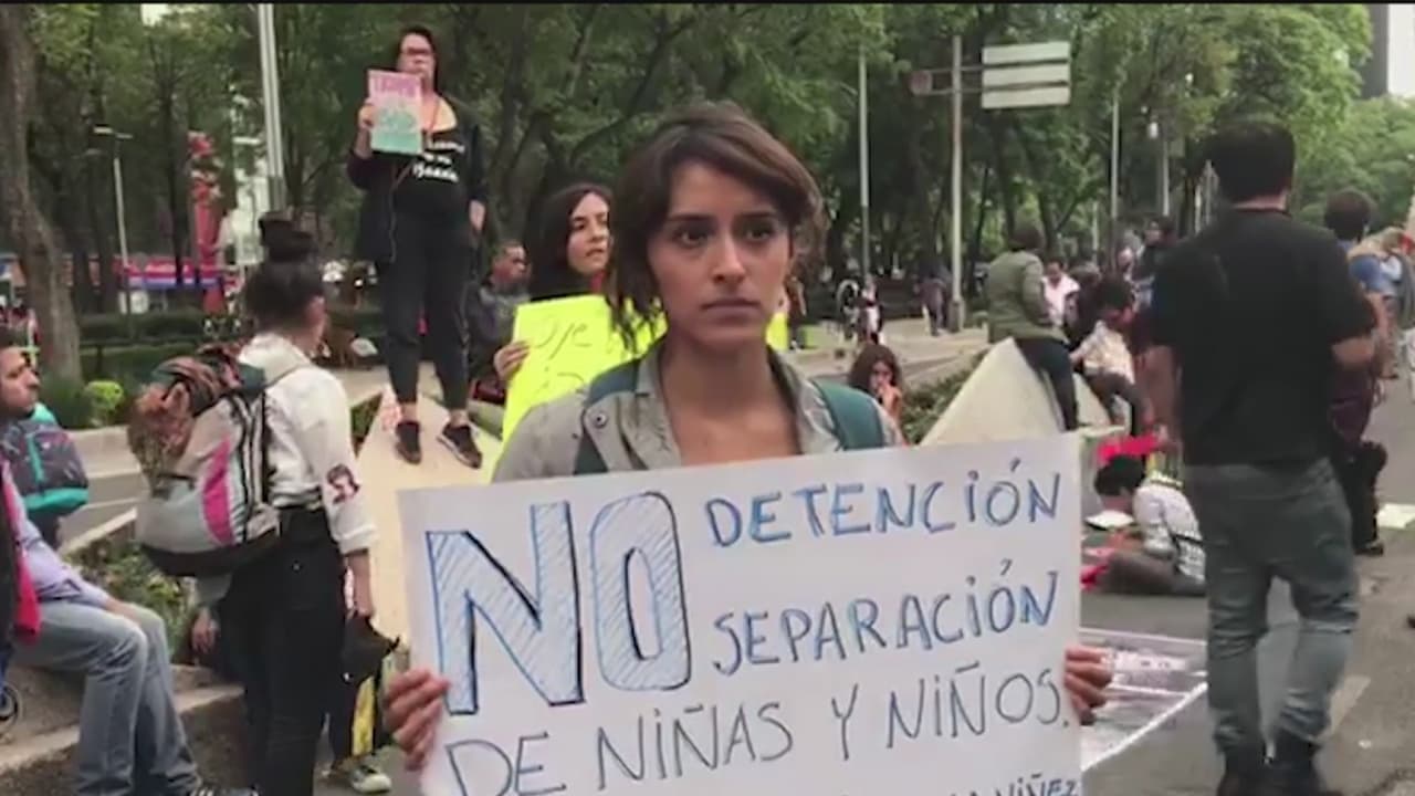 Manifestantes se reunieron afuera de la Embajada de Estados Unidos en la Ciudad de México para oponerse a la detención de menores y la separación de sus padres.