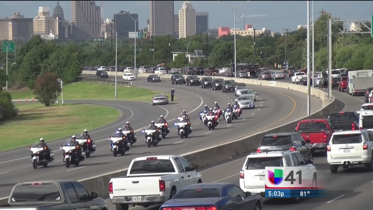 Cientos de conductores y peatones despidieron con honor la procesión que inició desde el Alamodome y recorrió la ciudad por la carretera 281.