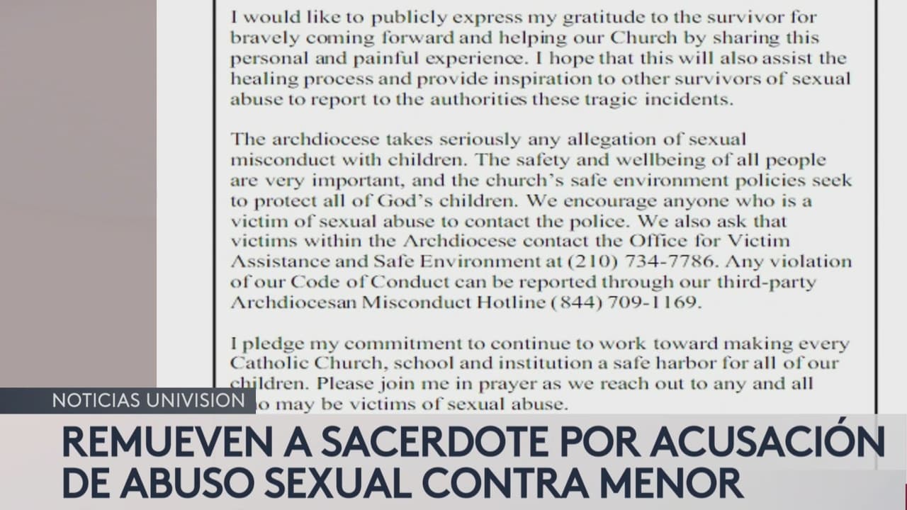 Autoridades de la iglesia pidieron a cualquier persona que haya sido víctima de alguna conducta inapropiada contacten a la Oficina para Asistencia de Víctimas y de Ambiente Seguir al 210-734-7786.