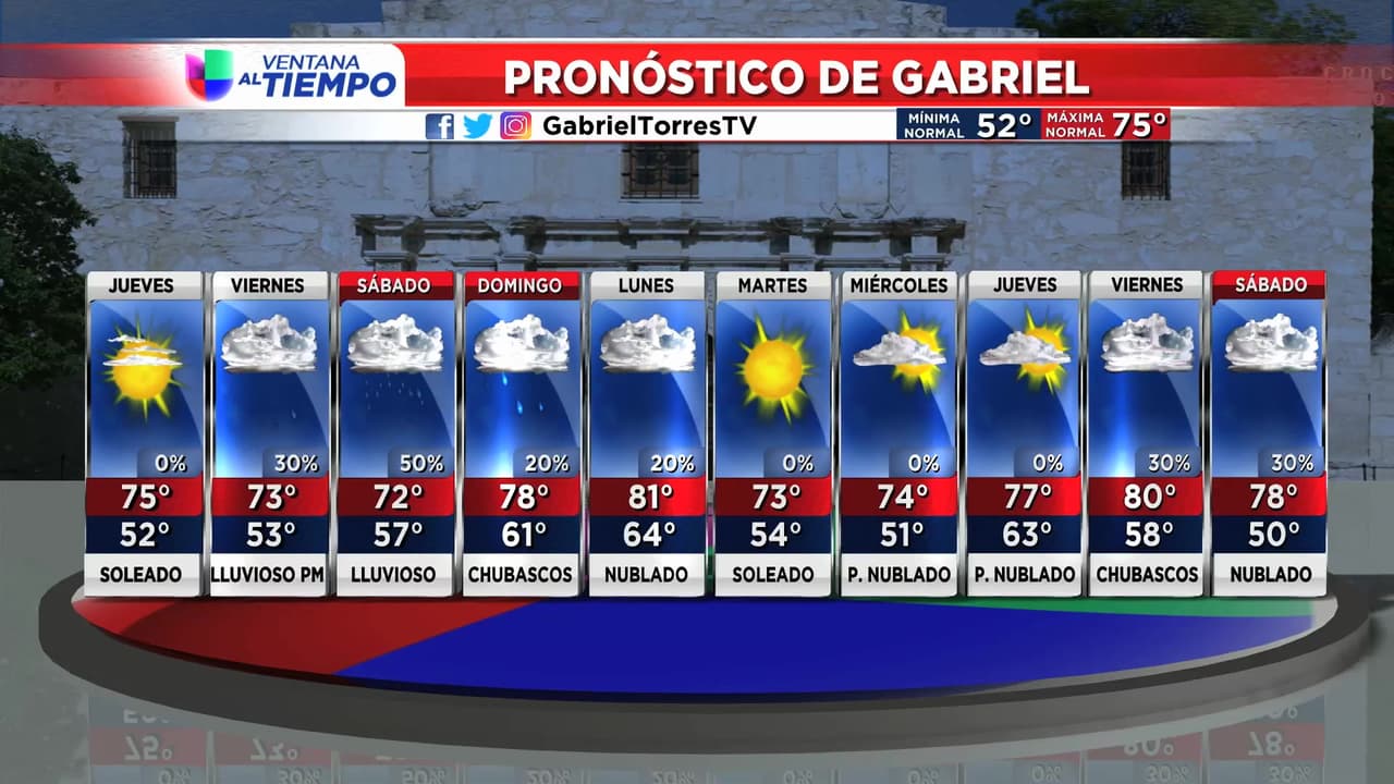 Las temperaturas máximas llegarán a los 75 grados, con nublados ligeros y sin lluvias, que se espera aparezcan a partir de la noche del viernes.