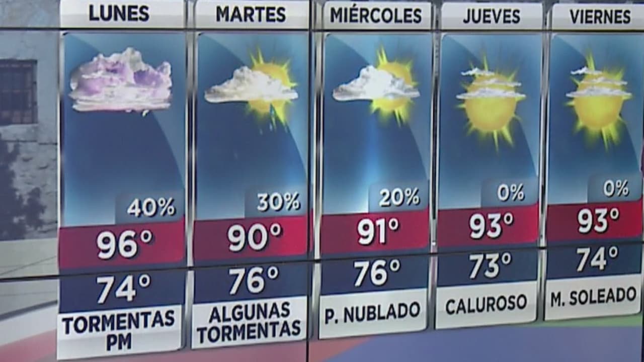 Para las horas de la mañana se esperan precipitaciones y en la noche se pronostican tormentas eléctricas. Las temperaturas llegarán a los 96 grados.