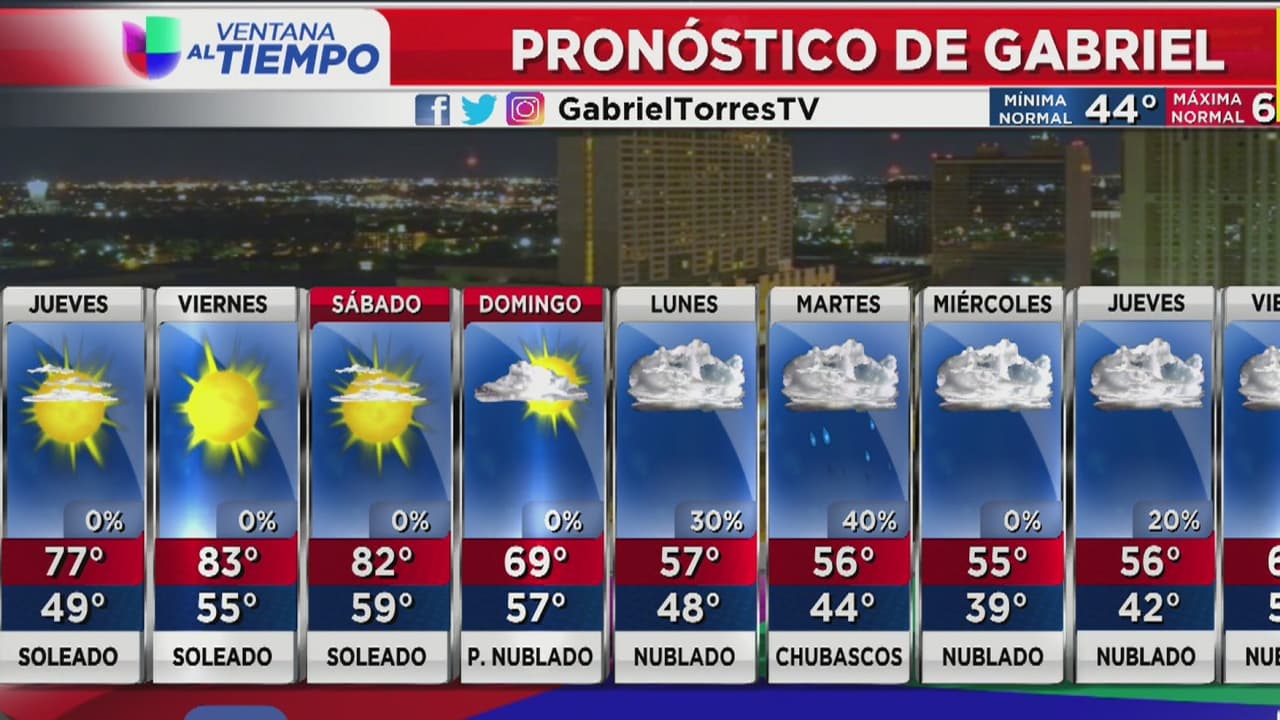 Las temperaturas máximas llegarán a los 77 grados, con condiciones soleadas.