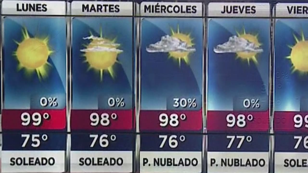 Este lunes las temperaturas máximas estarán cercanas a los tres dígitos, con cielos casi totalmente despejados.