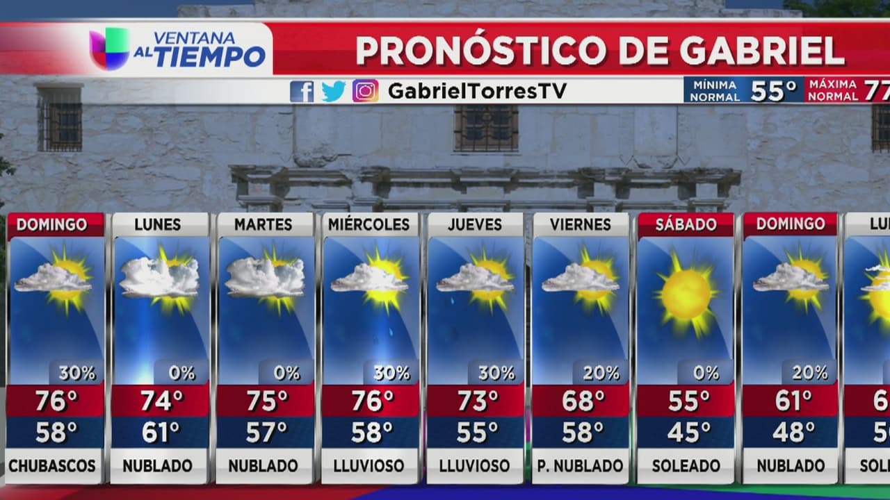Se prevé presencia de lluvia durante la madrugada del domingo y a lo largo del día las temperaturas máximas llegarán a los 76 grados, con chubascos ligeros.