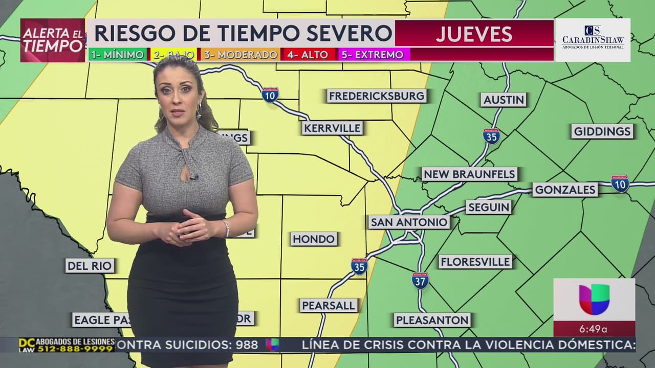 SAN ANTONIO, Texas.- Prepárate, porque mañana, jueves 4 de mayo, hay riesgo de tiempo severo en San Antonio con lluvias y granizo, advierte Valeria Barriga, presentadora del tiempo de Univision San Antonio.