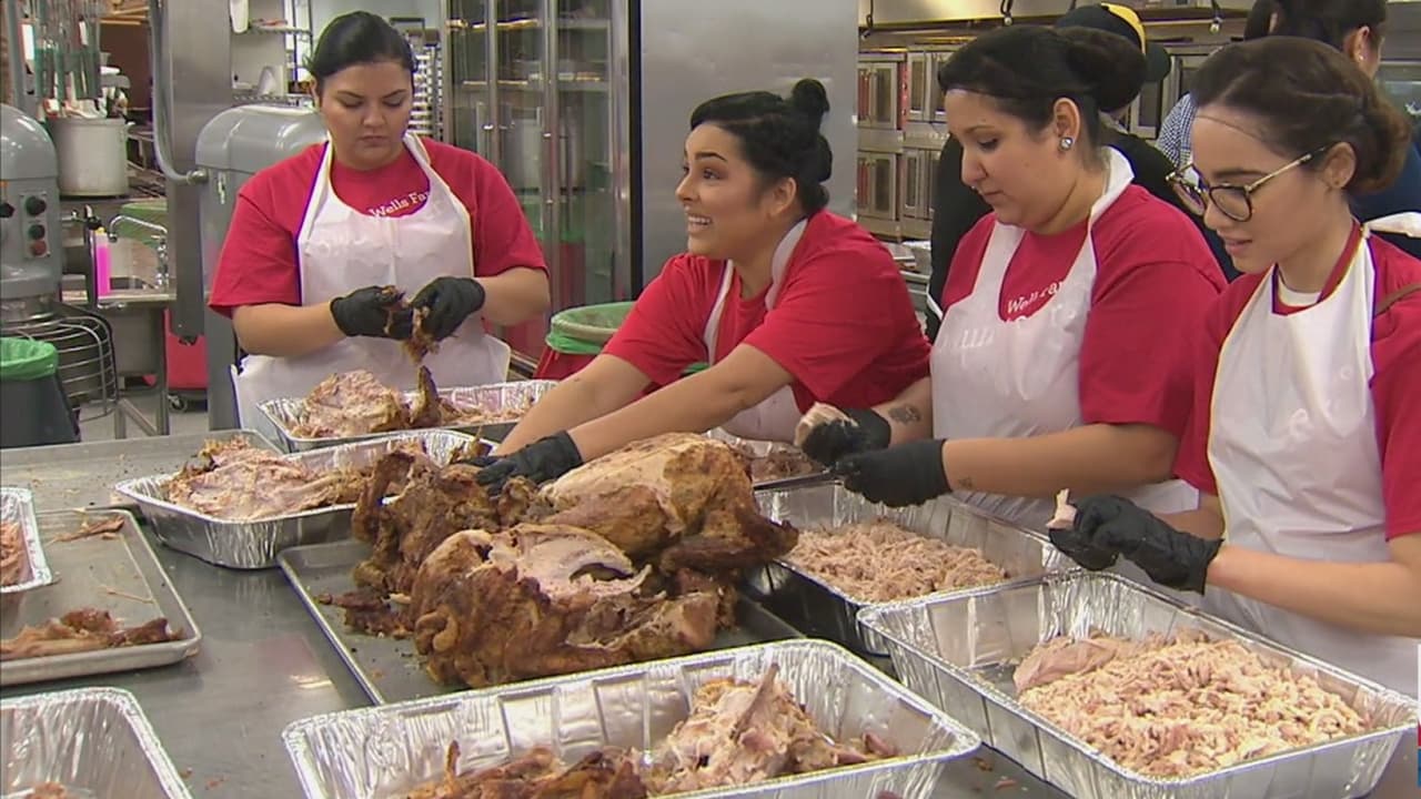 Cientos de voluntarios han llegado al centro de convenciones para ayudar con la preparación de alimentos. Además, el jueves se regalarán pavos a personas con discapacidad o con dificultar para llevar al centro.