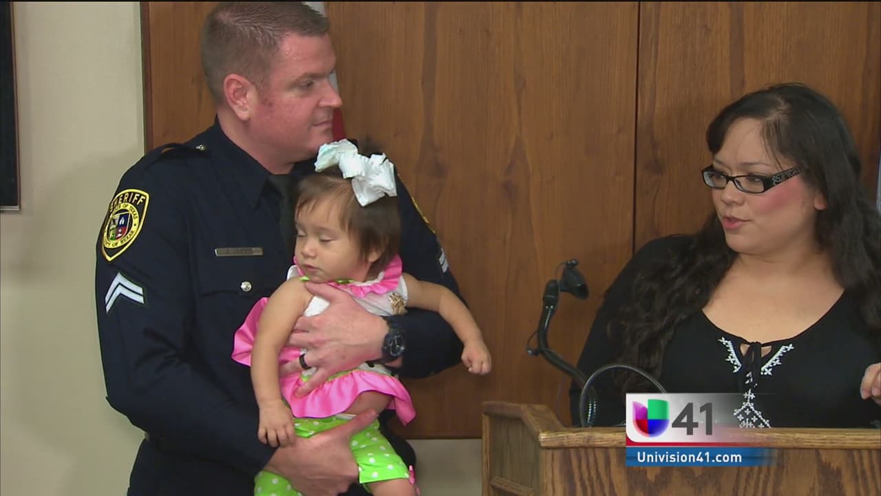 Una madre y su hija se encuentran con oficial que les salvó la vida