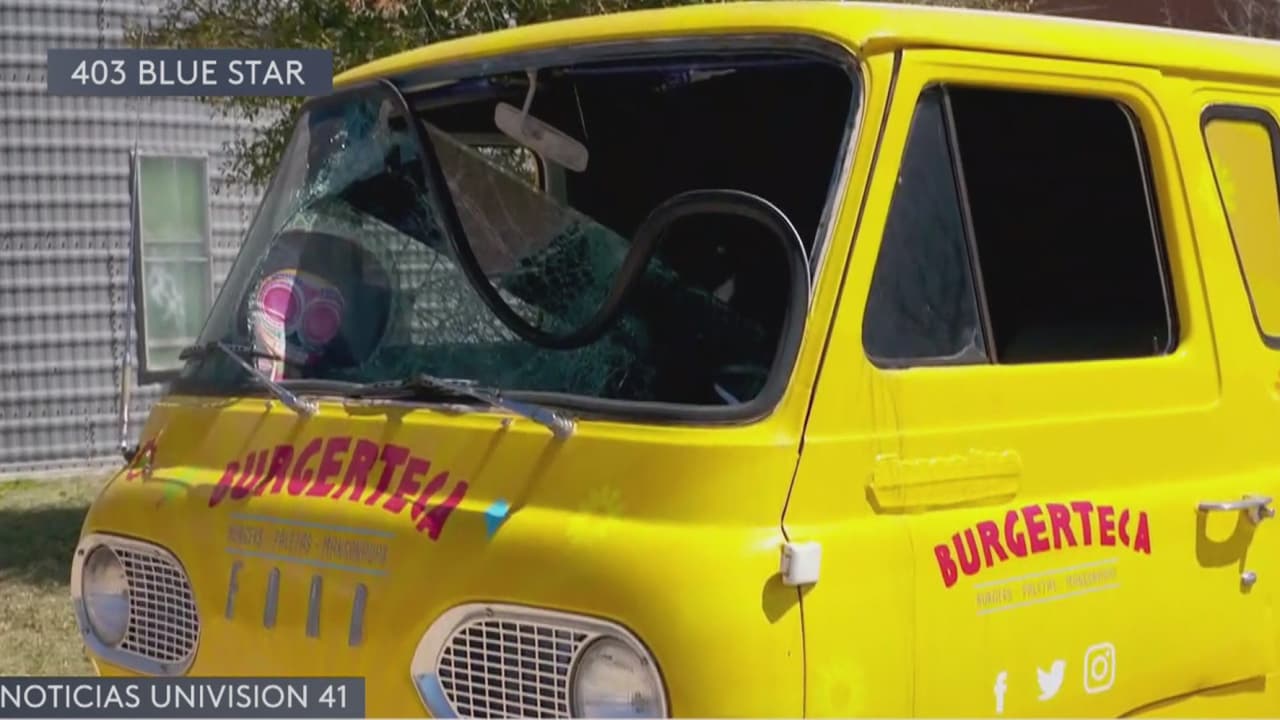 El camión de comida ubicado sobre el 403 de Blue Star fue vandalizado, en el lugar solo quedaron los vidrios rotos. El dueño del negocio descarta se trate de un crimen de odio, pero asegura que en 15 años de trabajo jamás había sido atacado.