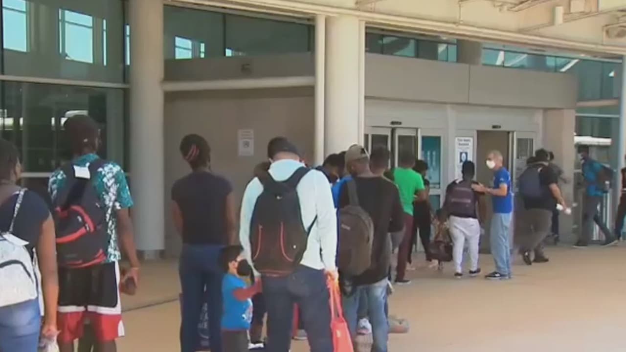 Alrededor de cinco camiones con inmigrantes haitianos llegaron al aeropuerto de San Antonio para ser subidos a un avión y repatriados. Hasta este domingo se habían contabilizado cerca de 16,000 inmigrantes que llegaron a la frontera de Texas.