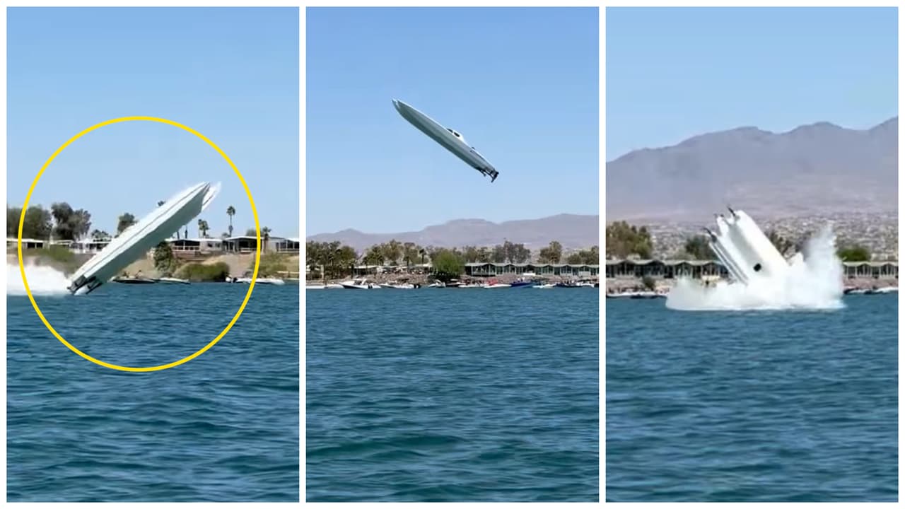 El sábado 26 de abril, durante la competencia 'Shugrue's Shootout' en Arizona, los ocupantes de una lancha que intentaban romper un récord de velocidad, salieron volando, recibiendo heridas leves.