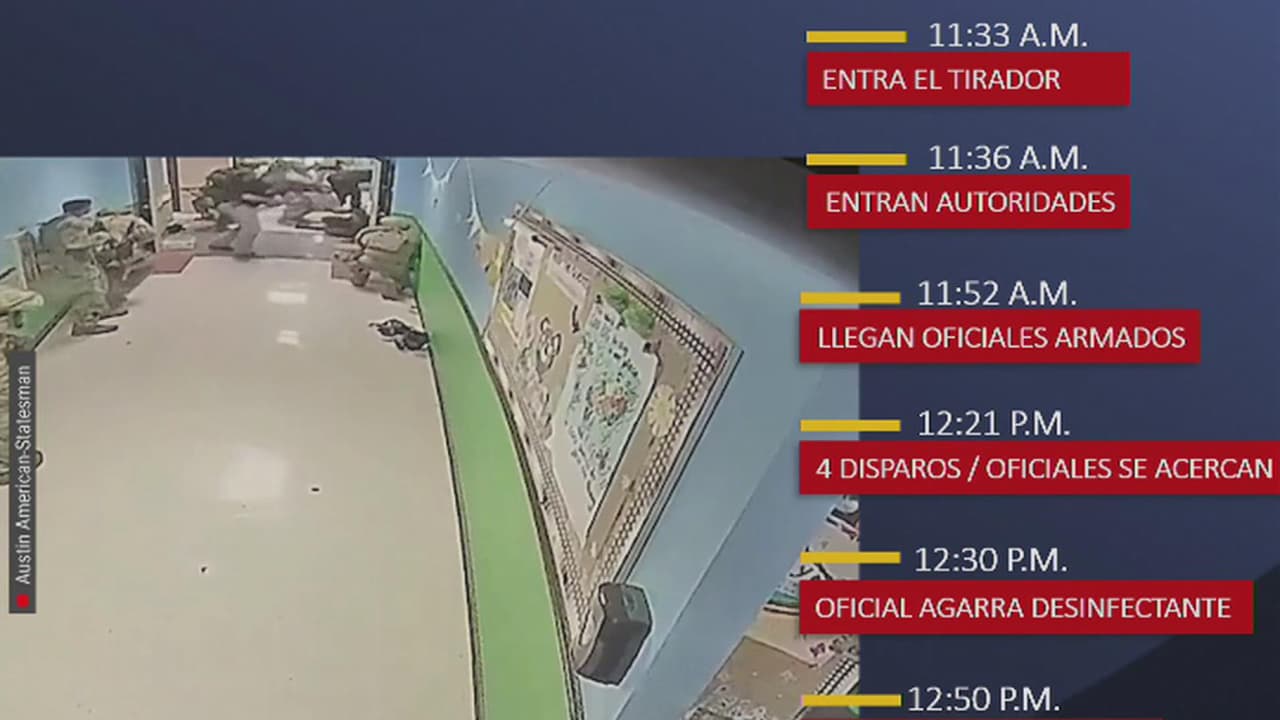 Un video de las cámaras de vigilancia del pasillo de la escuela revelado por un periódico de Austin muestra los momentos de la fallida operación policiaca en el tiroteo de Uvalde.