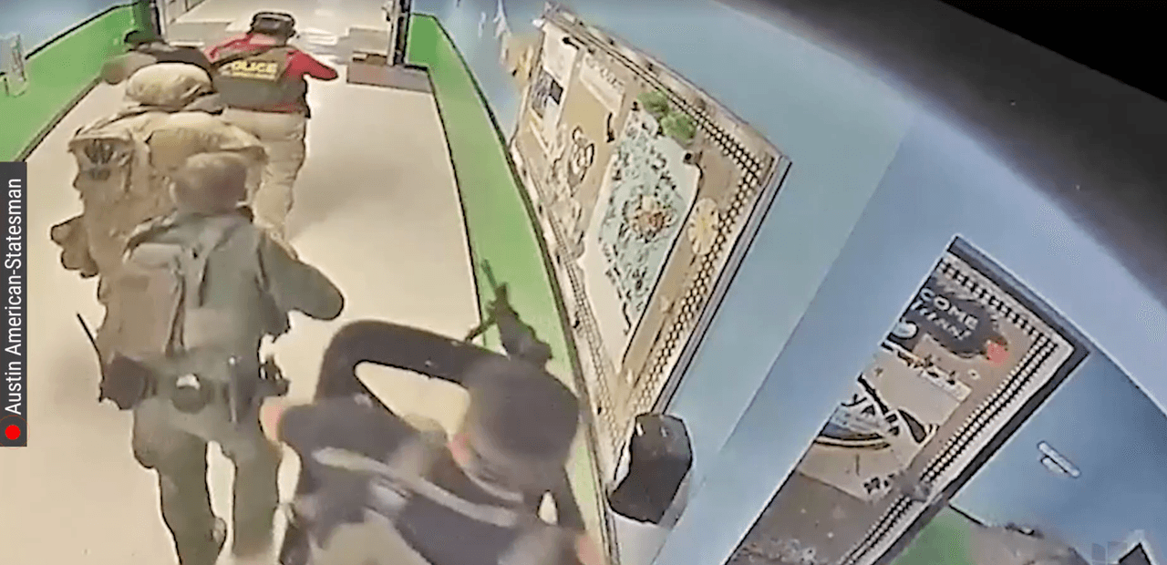 SAN ANTONIO, Texas. - El tiroteo en la Escuela Robb Elementary de Uvalde, Texas, ocurrió mientras policías armados hasta los dientes estaban en el pasillo del plantel sin tomar acción, según evidencia un video de vigilancia obtenido por el diario Austin Statemen.