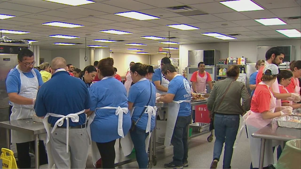 Voluntarios trabajan a toda velocidad para tener lista la tradicional cena de Raúl Jiménez