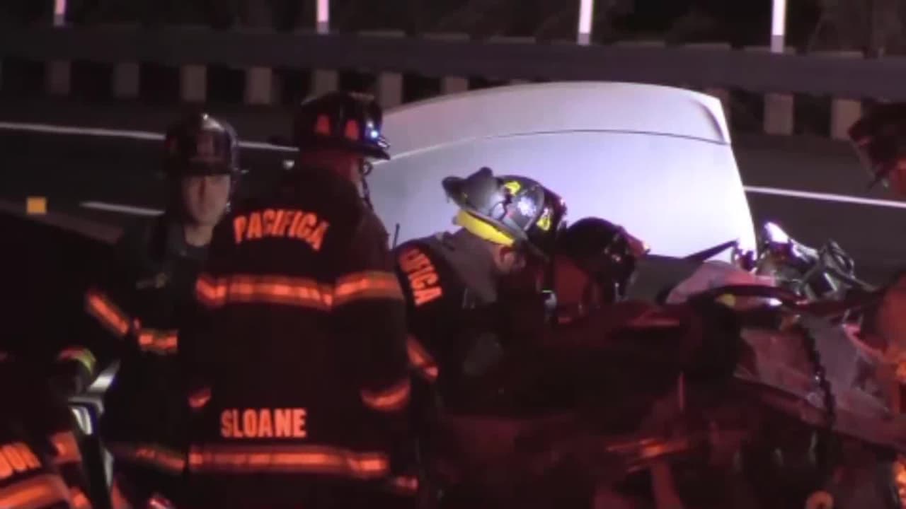 El incidente se reportó alrededor de las 3:14 am. Un Dodge Charger entró en los carriles hacia el sur de la autopista 1 en Manor Drive en la dirección equivocada y chocó contra un Mercedes SUV que viajaba en el carril rápido, dijo el oficial de CHP Bert Díaz.