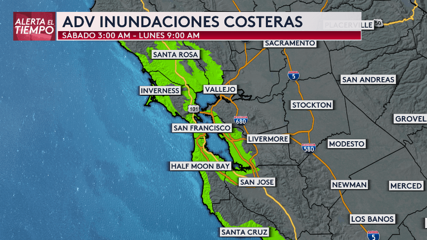 Advertencia por inundaciones vigente durante todo el fin de semana feriado en el Área de la Bahía