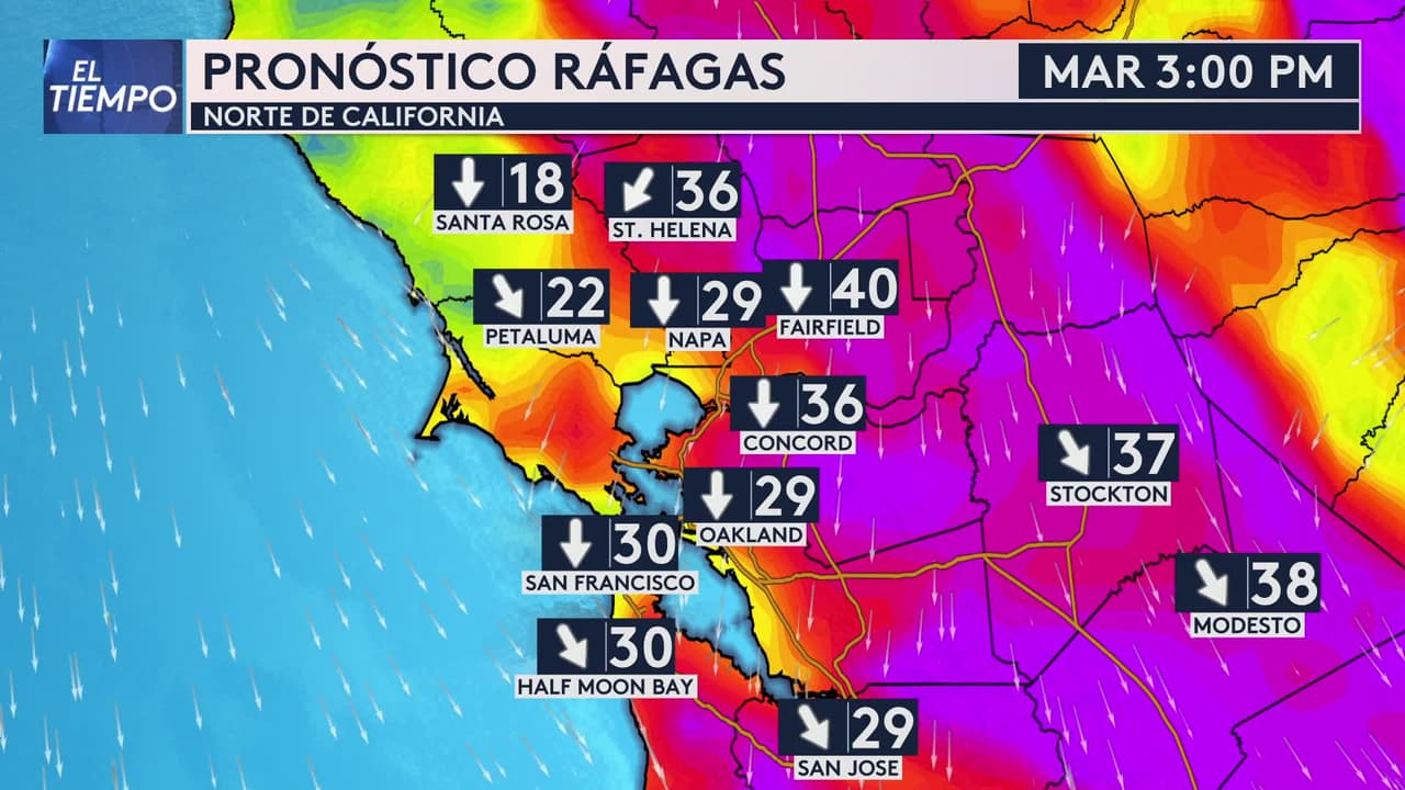 El pronóstico indica un ligero aumento en las temperaturas y fuertes vientos a lo largo del día, principalmente en el norte y el este de la Bahía, donde las ráfagas pueden llegar a las 65 millas por hora.