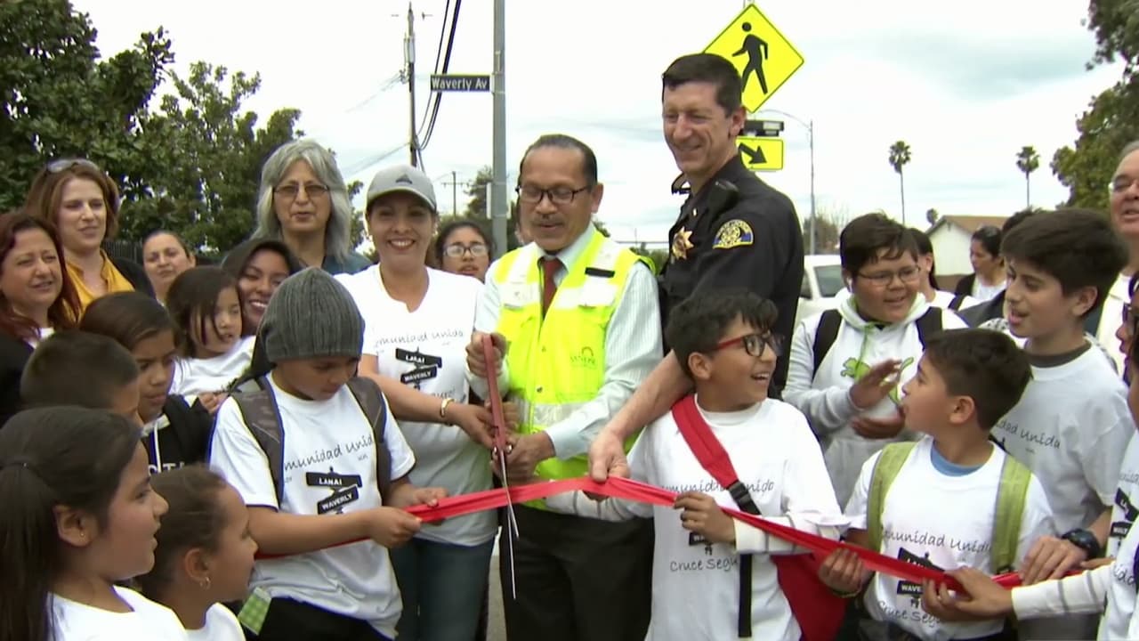 Alumnos y maestros de un vecindario en San José celebran las mejorías en un cruce peligroso