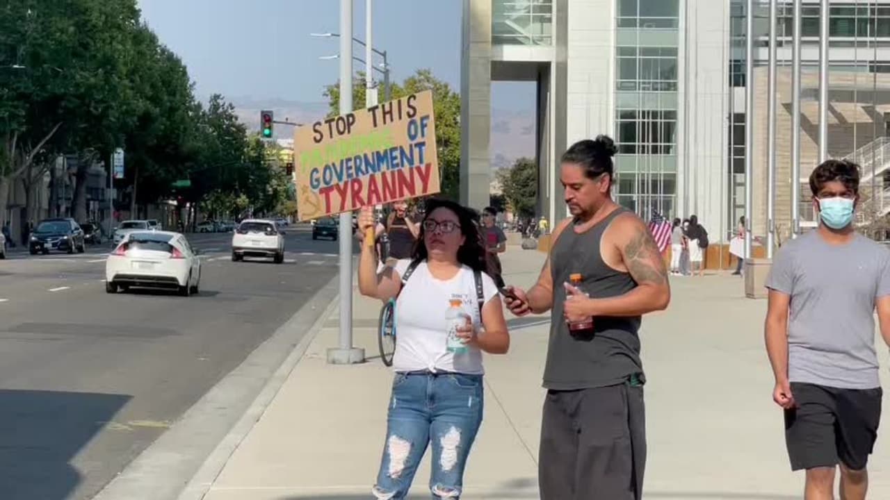 Manifestantes antivacunas protestaron en el Ayuntamiento de San José para oponerse a un mandato de vacunación. Mira los detalles.