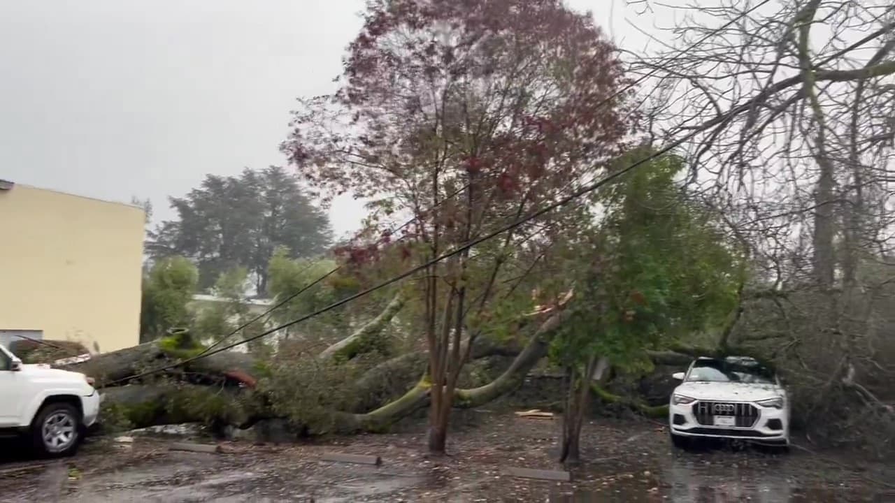 Un árbol cae en Santa Rosa, California, provocando un apagón debido al aplastamiento de cables de alta tensión. Las autoridades advierten a la población sobre los cables derribados y solicitan reportarlos al 911. Se esperan lluvias y vientos fuertes en la región este domingo y lunes.