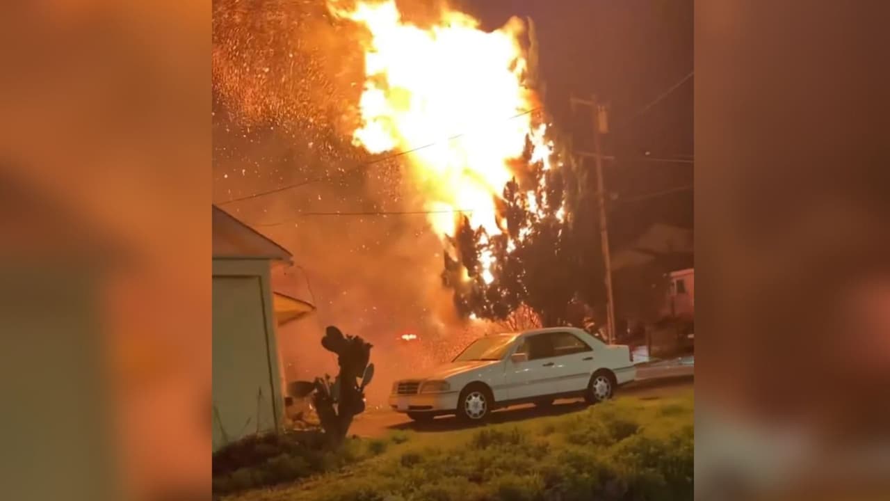 Arde árbol junto a cables de alta tensión en zona residencial de Castro Valley