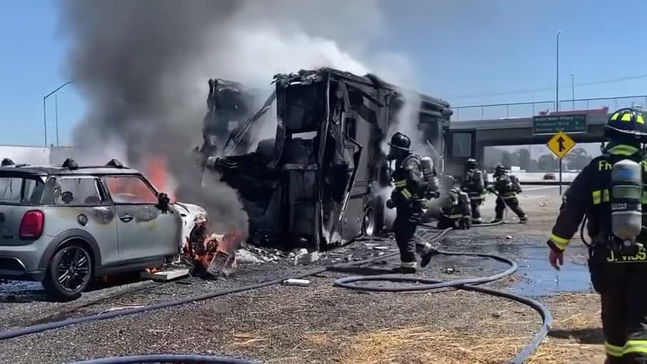 Un incendio de al menos dos vehículos se registró esta tarde en la autopista interestatal 880. Mira los detalles.