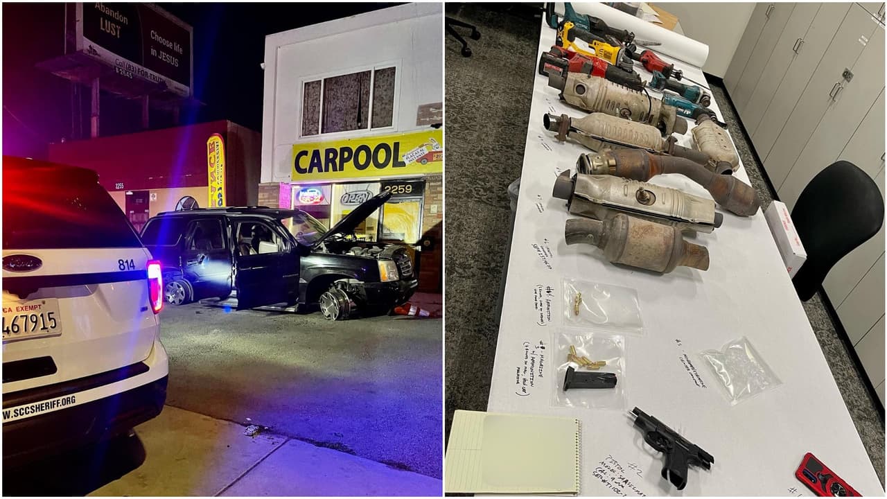 Oficiales de la oficina del Alguacil del condado de Santa Clara identificaron al sospechoso como Iván José Pérez, un residente de Oakland de 24 años, a quien localizaron dentro de un vehículo robado en posesión de drogas y convertidores catalíticos robados.