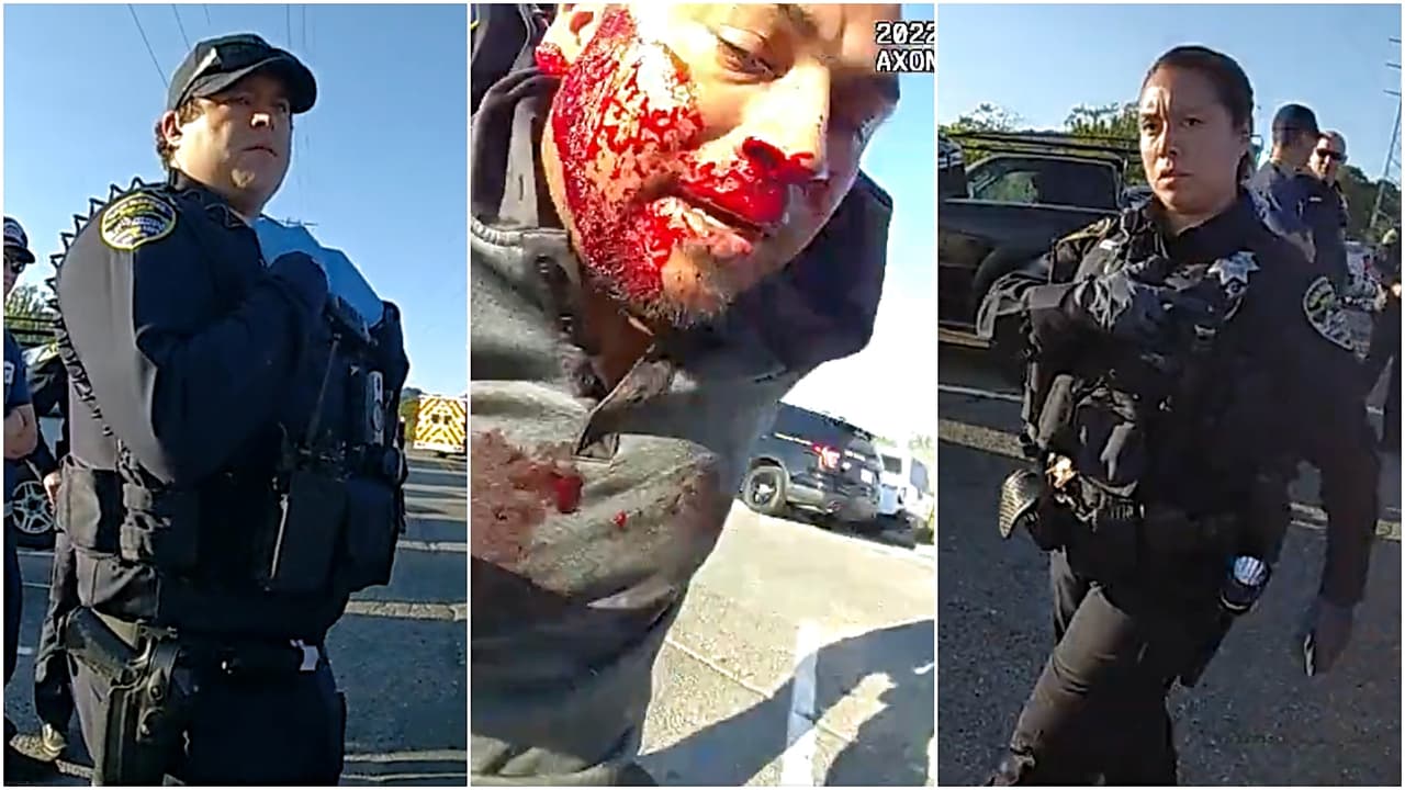“Terminó con la nariz rota”: Investigan a policía captado en video golpeando a jardinero latino que bebía cerveza en la calle