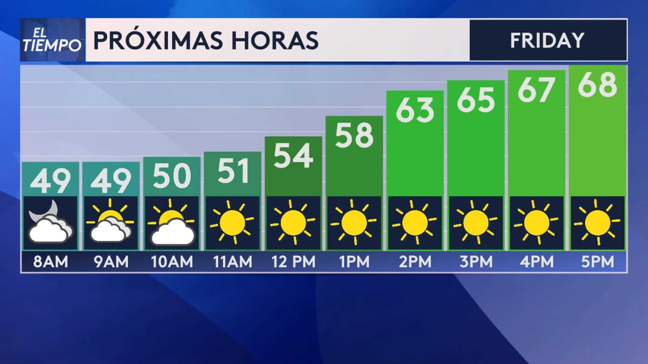 Para este viernes las máximas llegarán a los 70º F, pero a partir del sábado se espera un aumento de temperaturas que terminará el próximo lunes.