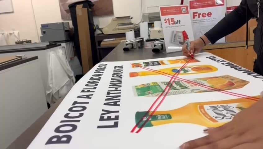 Una ley recientemente aprobada por Ron DeSantis está obligando a los inmigrantes indocumentados a huir de Florida, pues se les complicará encontrar trabajo y acceder a servicios de salud. En San José, California, reaccionó a esto y organizó un boicot contra empresas de Florida que producen jugos de naranja.