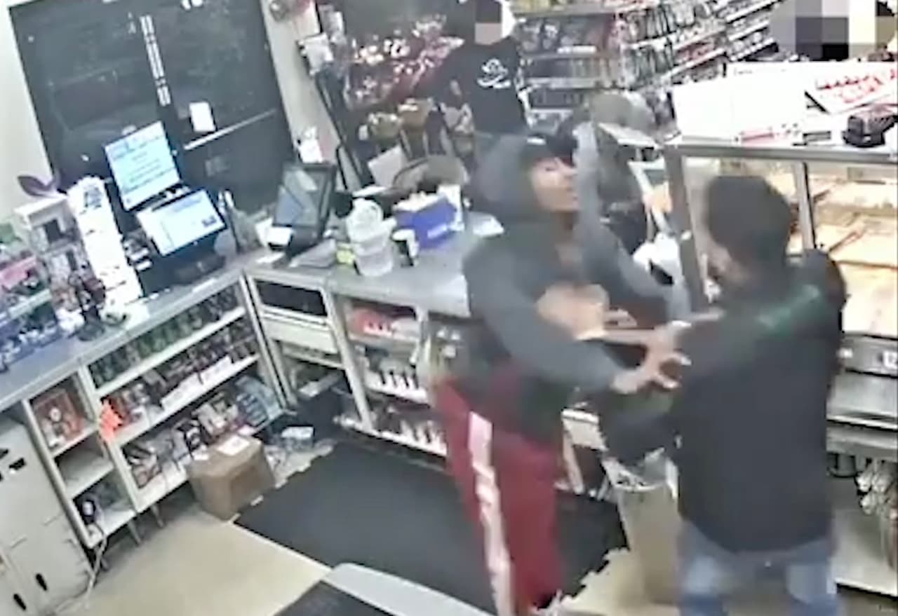 Por medio de su cuenta oficial de Facebook, las autoridades dieron a conocer un video que muestra el momento en el que el sujeto intenta golpear al cajero de una tienda 7-Eleven saltando sobre el mostrador y empujándolo de manera violenta.