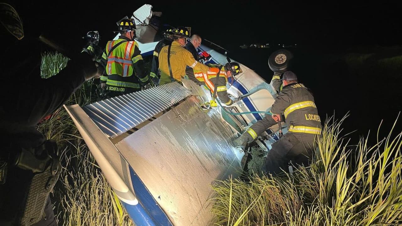 “Las unidades policiales que respondieron llegaron a la escena y confirmaron que un avión se había estrellado y se encontraba en una zona de humedales sucios, dificultando el acceso al avión”, indicó la oficina del Sheriff.