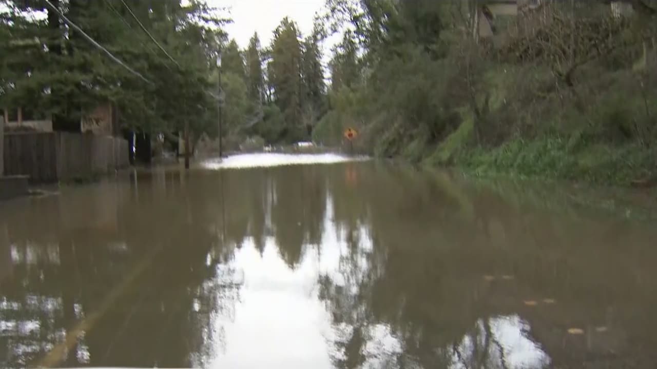 Calles de Forestville se convierten en ríos ante las fuertes tormentas en el norte de California