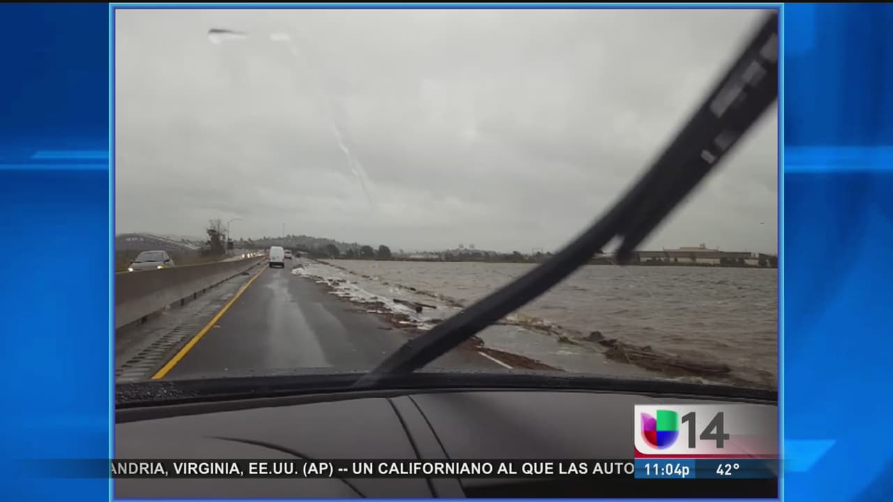 Una televidente capto el momento en el que una carretera del norte de la Bahía está a punto de inundarse a causa de las fuertes lluvias que cayeron en el área.