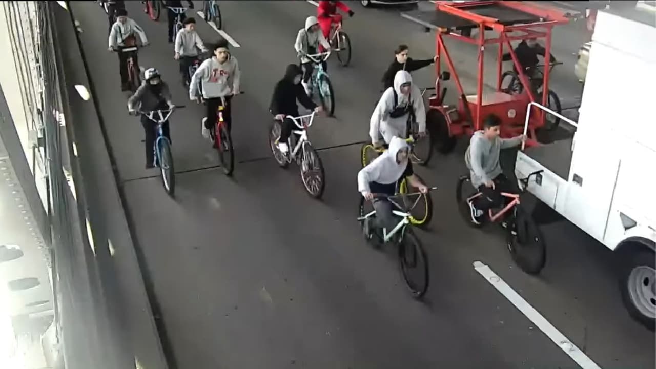 “Un gran grupo de jóvenes ciclistas ingresó a los carriles del puente hacia el este, bloqueando a veces todos los carriles, poniendo en peligro sus vidas”, indicó.