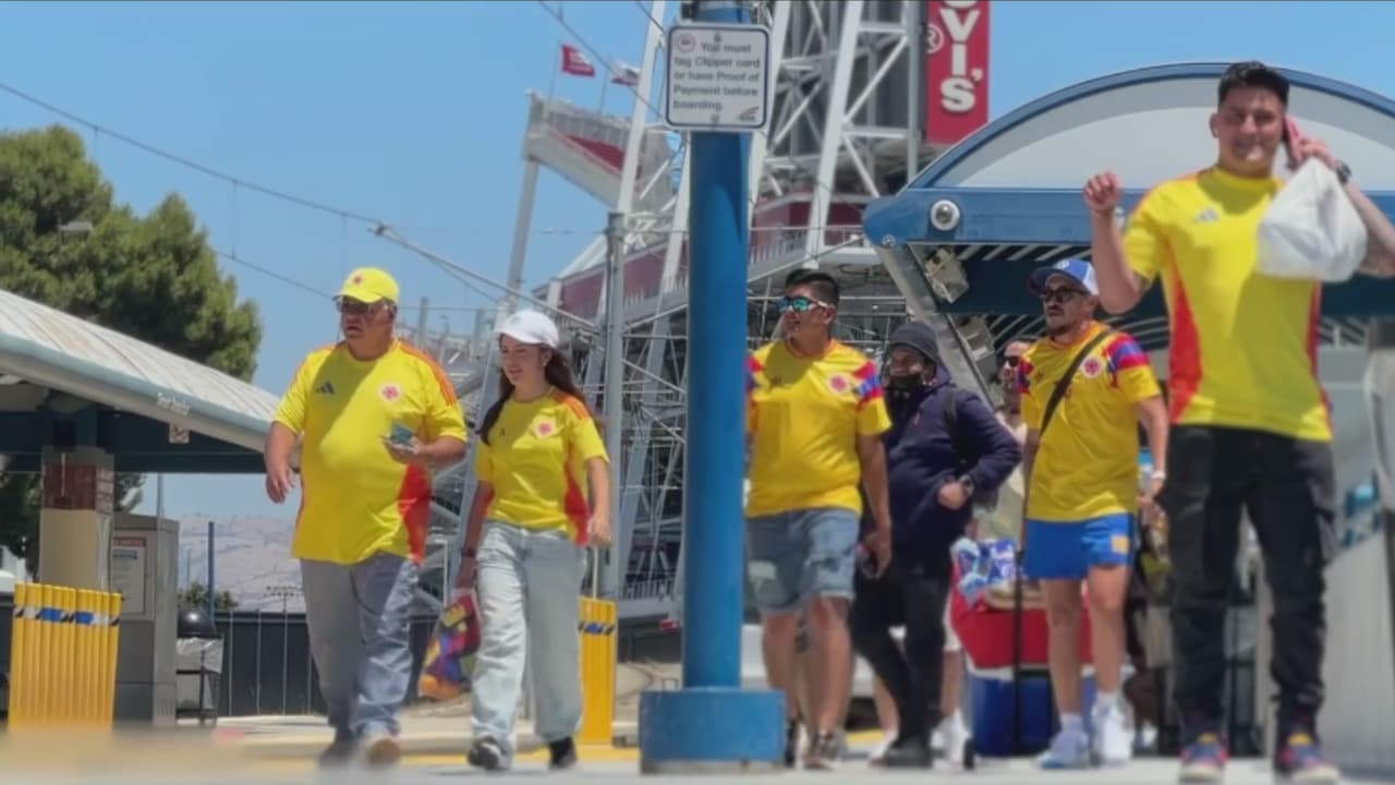 El transporte público se convirtió en un escenario festivo este martes, rumbo al Levi's Stadium, en Santa Clara, previo al partido entre Colombia y Brasil. Y es que, decenas de aficionados expresaron su emoción con la camiseta de la Selección Colombia puesta. “El 10% de los asistentes a eventos que se realizan en el Levi's Stadium son los que utilizan el transporte público”, dicen autoridades.