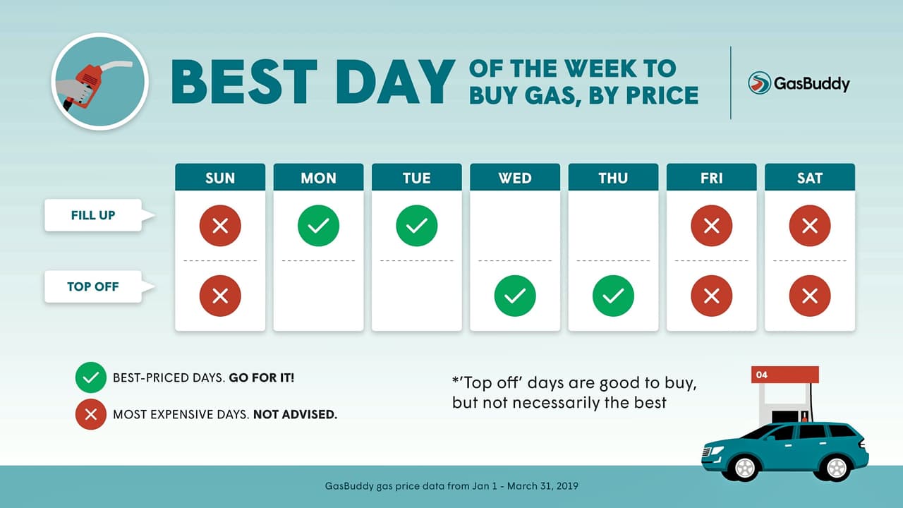 En medio de estos incrementos vertiginosos, un nuevo reporte de GasBuddy dio a conocer cuáles son los mejores días para comprar gasolina. En resumen, los lunes y martes son los mejores días para llenar el tanque de tu vehículo, mientras que los viernes y sábados suelen ser los días que registran los precios más caros. En la siguiente imagen (con textos en inglés) puedes ver sus hallazgos.