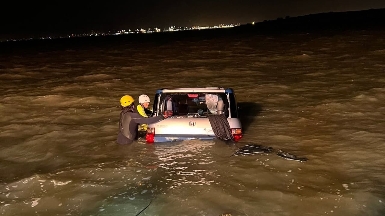 Un conductor cayó con su auto en la marina de San Leandro y personal del Departamento de Bomberos del Condado de Alameda acudió al rescate.