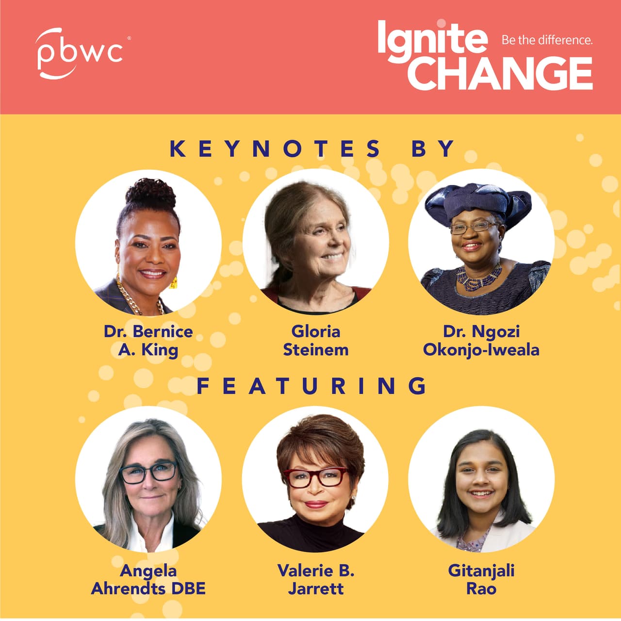 Únase a la 32ª Conferencia Anual de PBWC, #IgniteChange del 11 al 13 de mayo. ¡Únase a miles de personas durante 3 días de sesiones magistrales diarias, seminarios de desarrollo de habilidades, redes y más! Visite PBWC.org para registrarse en este evento virtual de 3 días.