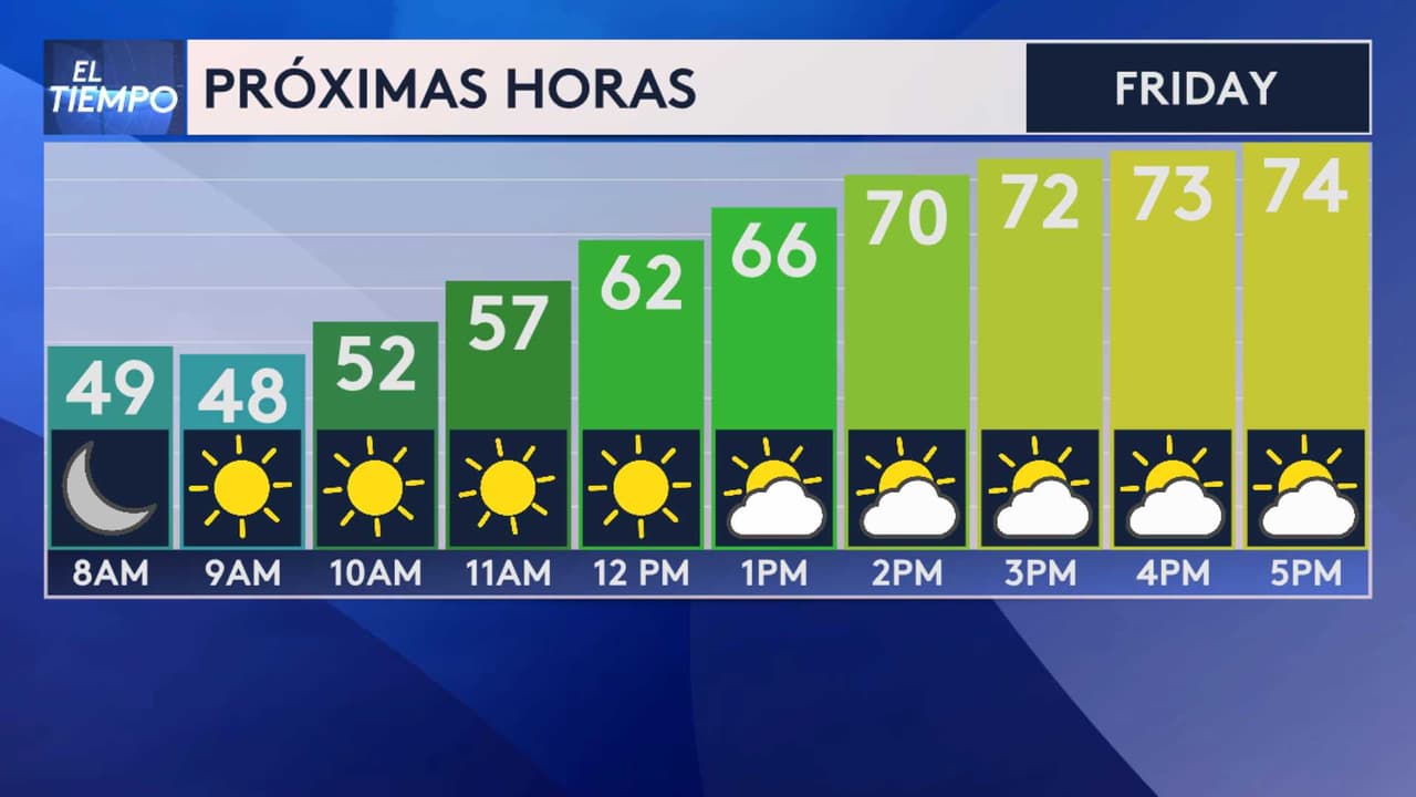 Luego de dos días de intenso calor, el termómetro bajará considerablemente para el sábado y el domingo con máximas por debajo de los 70º F.