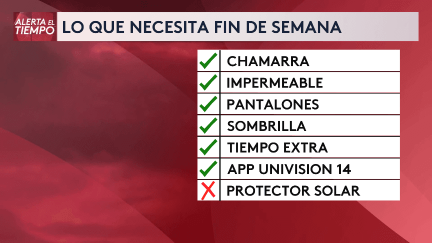 Durante el fin de semana persistirán las lluvias en toda la región, aunque tendremos espacios de sol. Las tardes se mantendrán con temperaturas máximas entre los 57 F hacia San Francisco y Oakland, llegando a los 61 F hacia San José. Tenga su paraguas a la mano. Mantenga precaución en la carretera y tome tiempo extra para llegar a su destino. No cruce calles inundadas. Esté atento a las informaciones de las autoridades, principalmente si vive cerca de los ríos.
