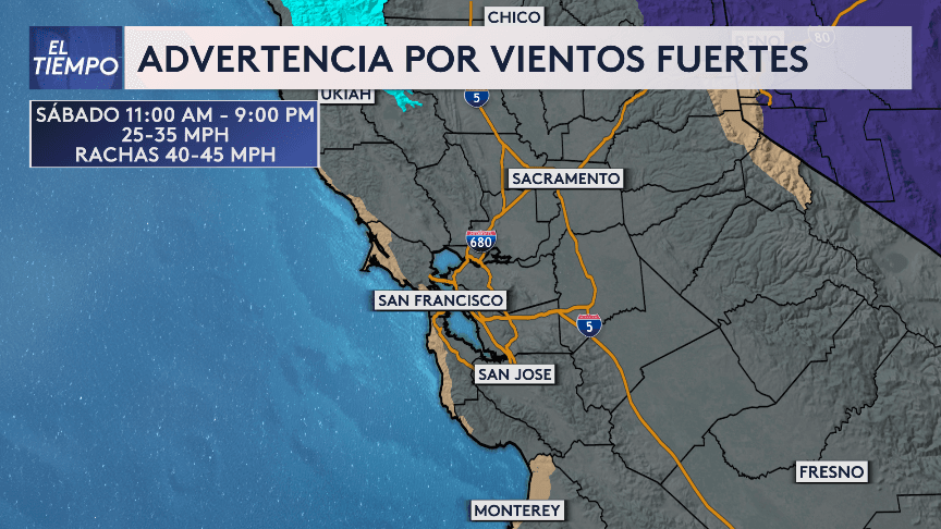 Las temperaturas máximas rondarán los 60s y 70s. Vientos del Noroeste entre 25-35 mph con rachas superiores en zonas costeras.
