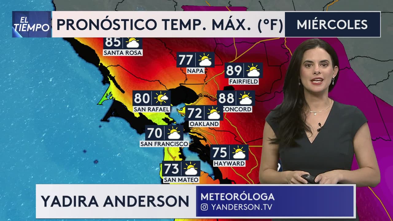 Temperaturas máximas de 91ºF para Livermore, 89ºF para Fairfield y 83ºF para San José, mientras que en la costa habrá temperaturas más agradables. Mira los detalles del pronóstico del tiempo.