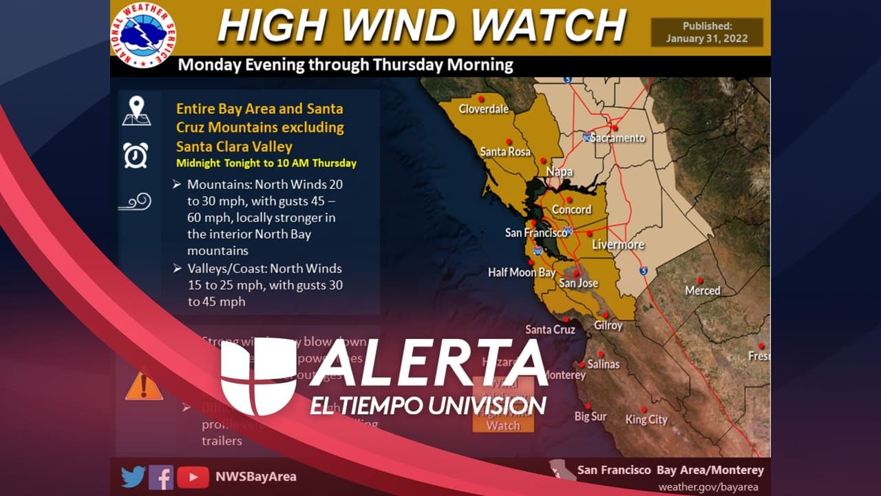 Un aviso por vientos fuertes está vigente para la mayor parte del Área de la Bahía. Mira en qué zonas debes tener más cuidado.