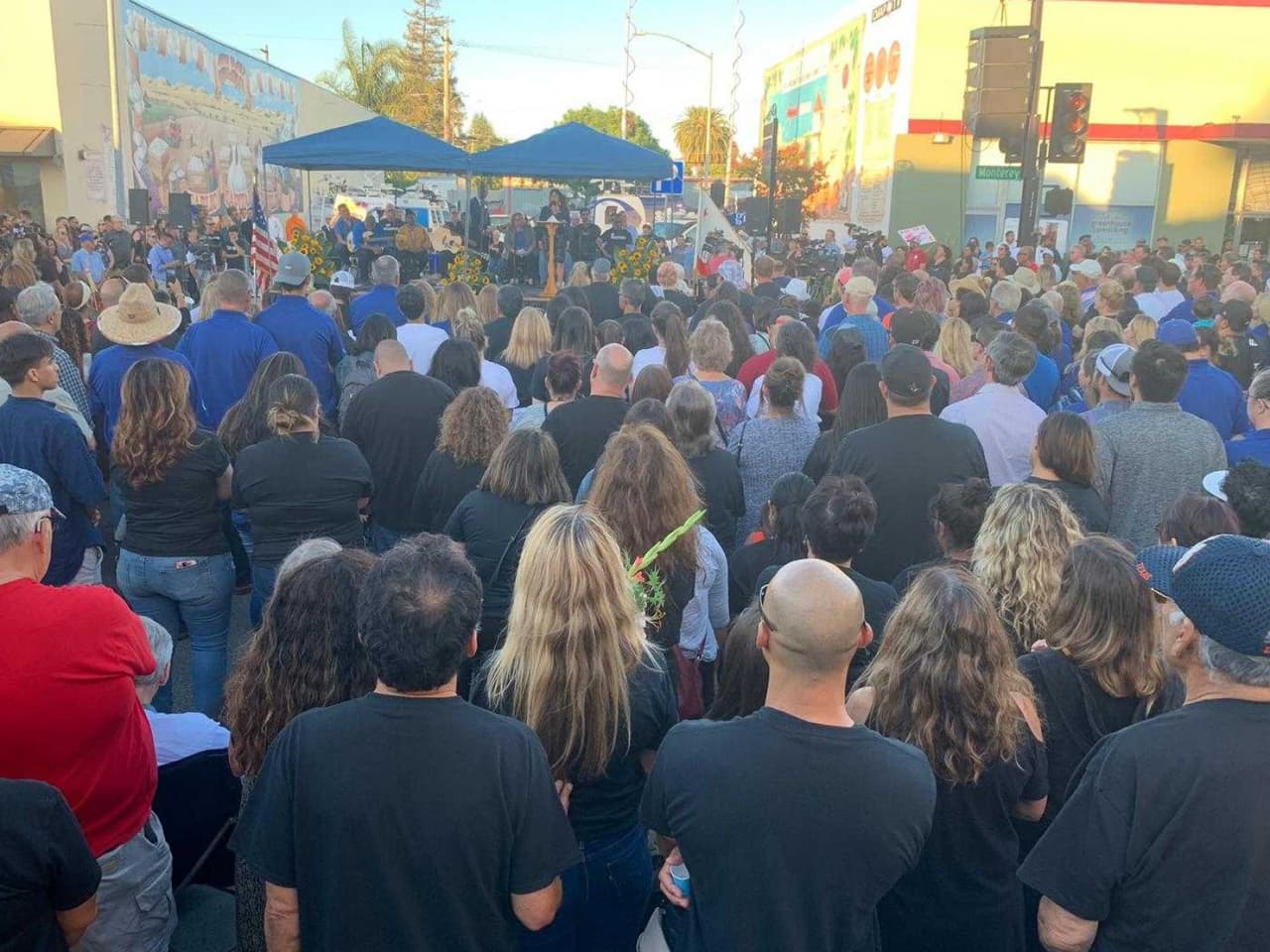 La vigilia para honrar a las víctimas y por la paz en la comunidad fue organizada por líderes de Gilroy, el Festival del Ajo, la Cámara de Comercio de Gilroy y asociaciones de comerciantes.