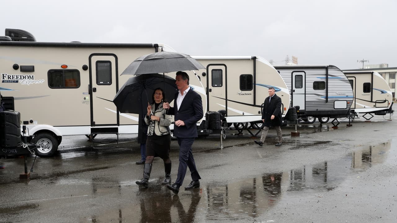 "Es una crisis humanitaria": gobernador Newsom entrega a Oakland casas móviles para albergar desamparados