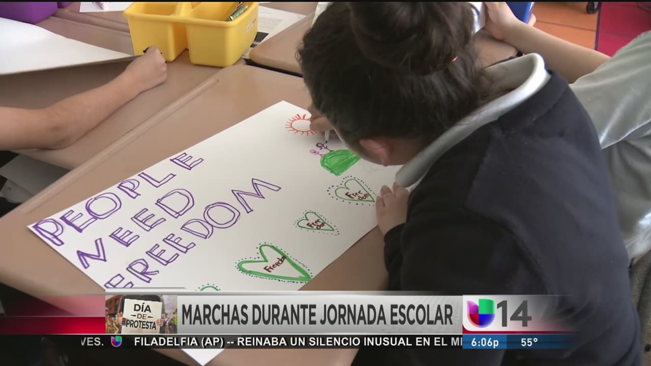 Niños se unieron a la iniciativa ‘Un día sin inmigrantes’ y al terminar clases participaron en diversas movilizaciones.