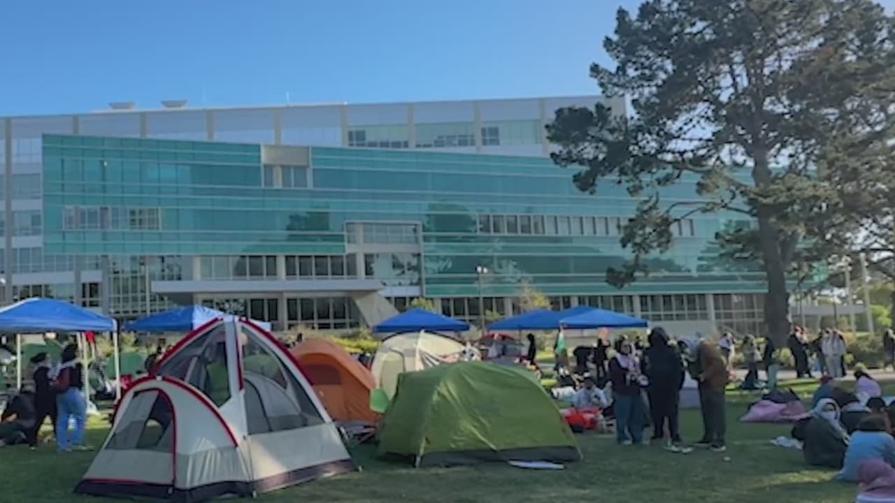 Alumnos de la Universidad Estatal de San Francisco (SFSU) se unen a las múltiples protestas que ya se han llevado a cabo en otras partes del país para exigir un cese al fuego en Gaza y expresar su apoyo a Palestina. Los jóvenes manifestantes montaron tiendas de campaña en el campus y en una de ellas instalaron el pliego petitorio con sus demandas. Piden, entre otras cosas, que la presidenta de la universidad, Lynn Mahoney, se pronuncie en contra del conflicto.