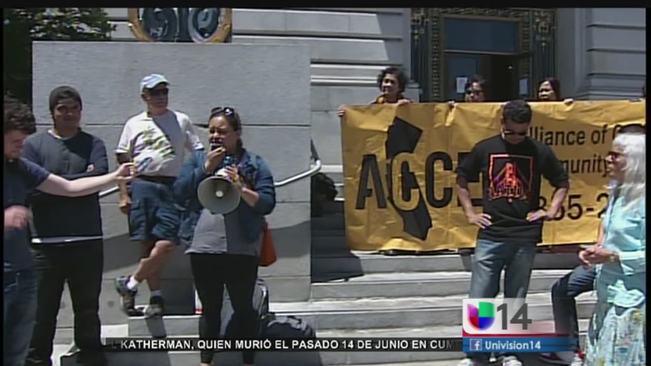Un grupo de inquilinos y activistas llegó al ayuntamiento de San Francisco para exigirle a los supervisores de la ciudad que inviertan más fondos en la construcción de vivienda asequible.