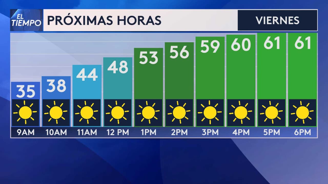 Las temperaturas máximas para este viernes rebasarán los 60 F en algunas partes de la región, mientras que los cielos se mantendrán completamente despejados.