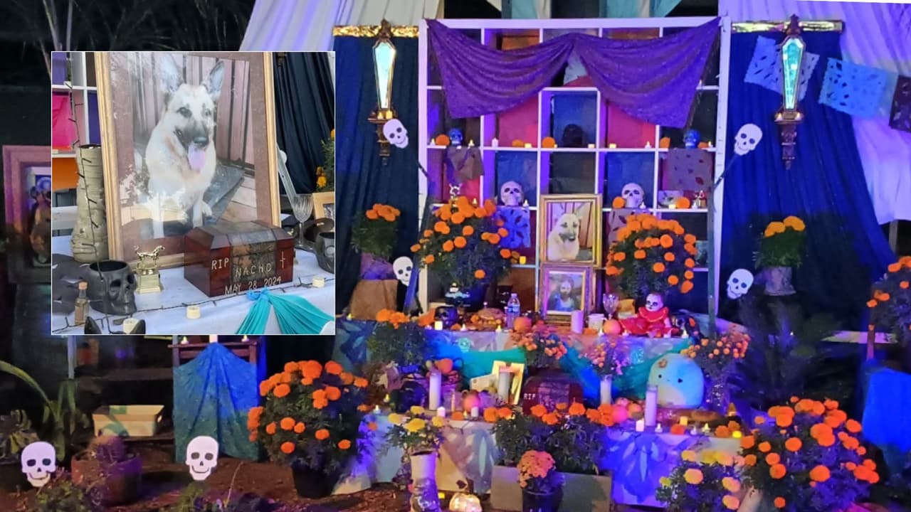 Una familia hispana, que vive en la calle, dedicó un altar gigante a su perro de servicio, Nacho, quien fue asesinado en San José, California. Según Miguel Ángel Maruyama, el canino fue entrenado para acompañar a su hijo con autismo desde hace años. Pese a que ahora viven en las calles, no dejaron pasar la oportunidad de honrarlo y recordarlo con una ofrenda en para las celebraciones de Día de Muertos.